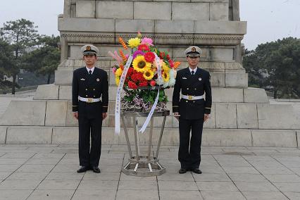 41日下午,我們在系教員常路賓帶領下,來到位于錦州的遼沈戰(zhàn)役紀念館,向英雄紀念碑敬獻花籃。儀式在雄壯激昂的《獻花曲》中拉開序幕,兩名禮兵邁著鏗鏘有力的禮步將花籃緩緩送到紀念塔正前方。花籃挽聯(lián)上寫道:“功業(yè)常齊天地永,紅旗自由后人擎;中國人民解放軍海軍工程大學敬挽?!痹谥鞒秩说慕M織下,我們統(tǒng)一脫帽,向烈士紀念塔默哀一分鐘。并重溫了入伍宣誓。最后,教員對我們說道:“同志們,歷史證明,強國必先強軍。今天的你們是以共和國未來海軍軍官的身份來到此地,更應當學習先烈們的優(yōu)秀品質(zhì),不斷磨礪自己,努力提升自己,在強軍興軍的征程上奉獻自己的青春熱血!”