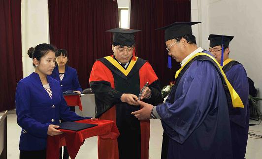 儀式在激情洋溢的樂曲中開始。首先大連海事大學(xué)信息科學(xué)技術(shù)學(xué)院自動化系主任李暉宣讀首批工程碩士名單。獲得大連海事大學(xué)首批工程碩士名單如下:北方航海公司王洪余、邱琦、范世偉、李忠曄、王德利、宿利楠、李海洋、王曉紅、李娜、儀表公司李鋼、海天科技公司黃帥。每一位畢業(yè)生聽到自己的名字時,都沉浸在金榜題名的幸福之中。集團團委書記黃亮專門為畢業(yè)生們發(fā)來賀信,并希望集團青年員工以他們?yōu)榘駱?,不斷加強學(xué)習(xí),努力提高專業(yè)技能水平,增強責(zé)任感和使命感,為給予員工創(chuàng)造良好學(xué)習(xí)和工作環(huán)境的航星集團做出更大貢獻。緊接著,11名碩士畢業(yè)生身著學(xué)士服、頭戴學(xué)士帽,在歡快的樂曲聲中,精神抖擻地走上主席臺。大連海事大學(xué)信息科學(xué)技術(shù)學(xué)院副院長曹德信、集團黨委書記、董事長劉義為畢業(yè)生撥流蘇,進行學(xué)位授予。當(dāng)工程碩士們從領(lǐng)導(dǎo)手中鄭重地接過學(xué)位證書的瞬間,激動與喜悅之情溢于言表,他們向領(lǐng)導(dǎo)們深深鞠躬致謝。曹德信副院長發(fā)表了熱情洋溢的講話。他首先祝賀11名工程碩士順利畢業(yè),并為他們?nèi)〉玫某煽兏械津湴粒M麄冊诠ぷ鲘徫簧夏軌蚴冀K堅持學(xué)習(xí)、堅韌不拔、愛崗敬業(yè)、腳踏實地地工作,為航星集團的發(fā)展貢獻自己的力量。同時,曹院長祝愿畢業(yè)生們前程什錦,歡迎?;啬感?纯?。